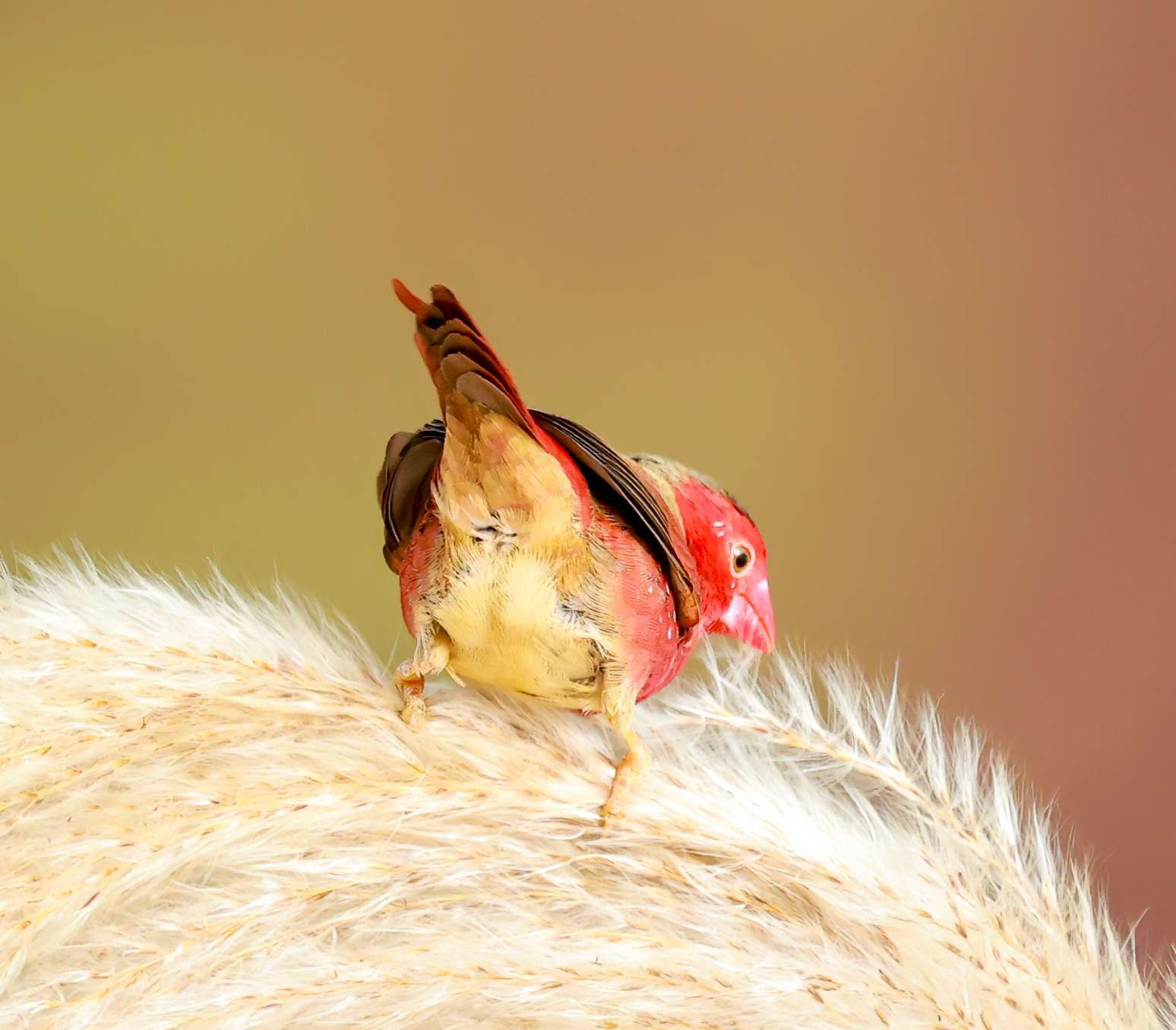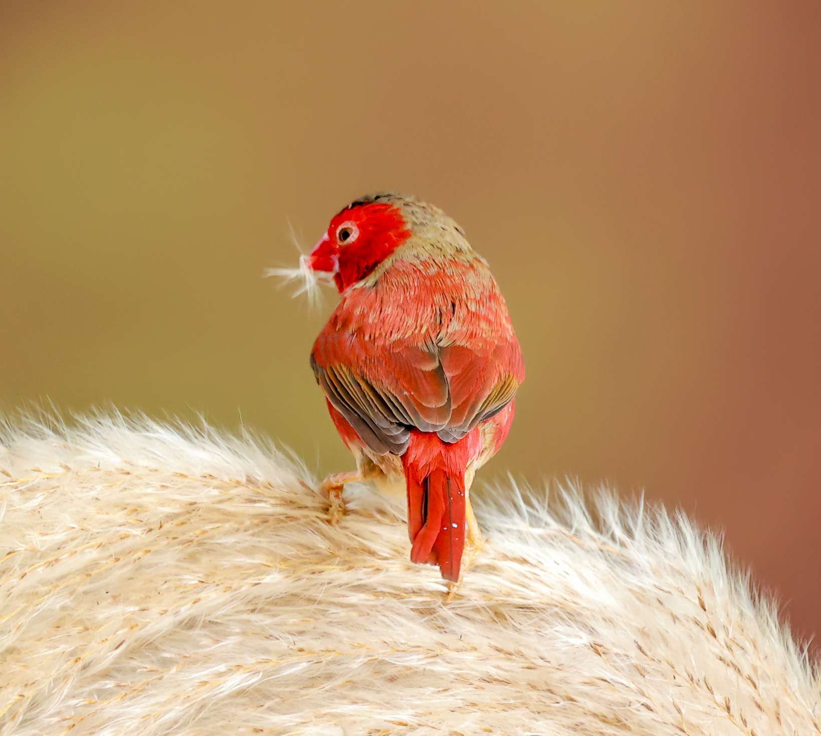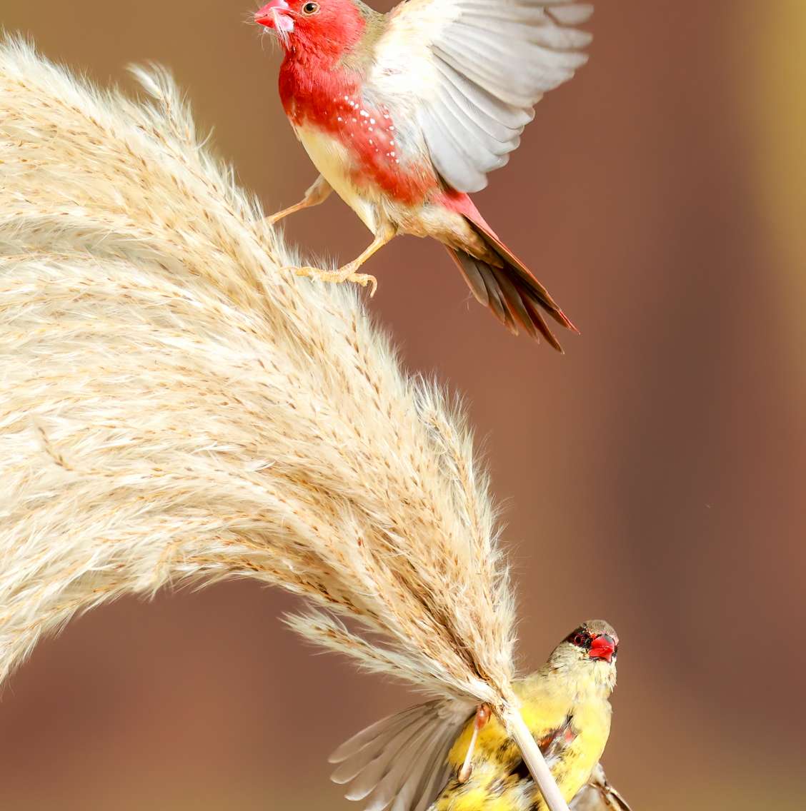 赤胸星雀最引人注目的就是它鲜艳的红色羽毛,特别是雄鸟,外形非常亮眼。它的面颊和胸部是醒目的樱桃红色,并且在红色的胸羽上,点缀着白色的小斑点,整体羽毛红至深红色。