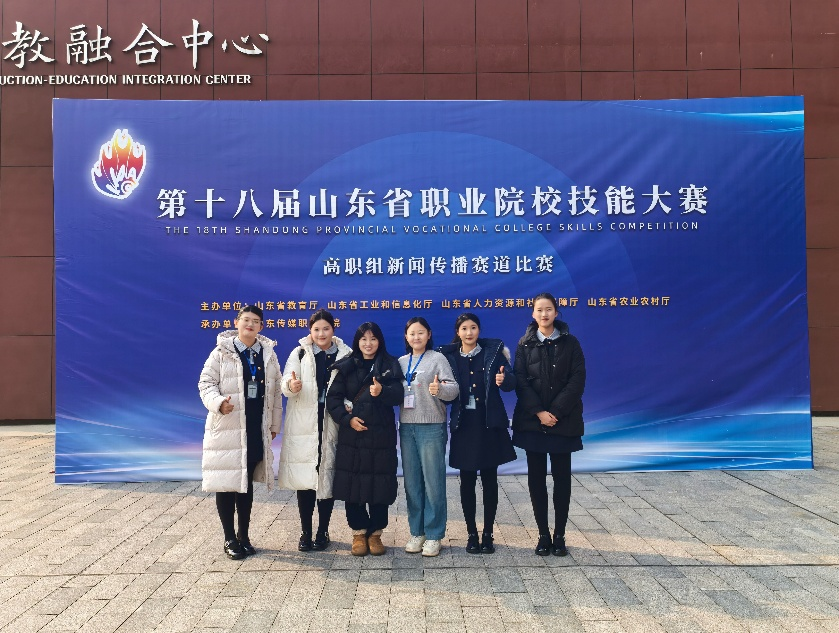12月17日,由山东省教育厅、山东省工业和信息化厅、山东省人力资源和社会保障厅、山东省农业农村厅联合主办,山东传媒职业学院承办的第十八届山东省职业院校技能大赛(高职组)新闻传播赛项比赛圆满落幕。本次比赛共吸引了山东省27支参赛队伍同台竞技,山东商业职业技术学院文化创意系韩晶晶、徐利丽两位教师指导的由融媒体技术与运营专业学生沈凡雅、刘海璐、胡佳瑶、孙艺嘉四位同学组成的参赛团队脱颖而出,喜获该赛项银奖。
