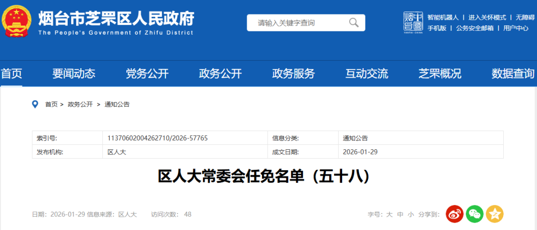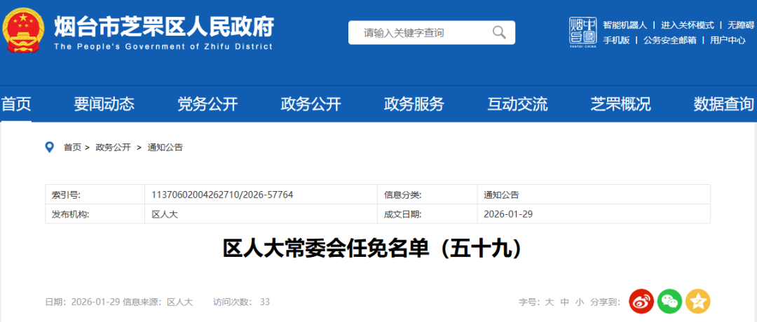 2026-01-30 09:43 爱岚山、芝罘区人民政府网站