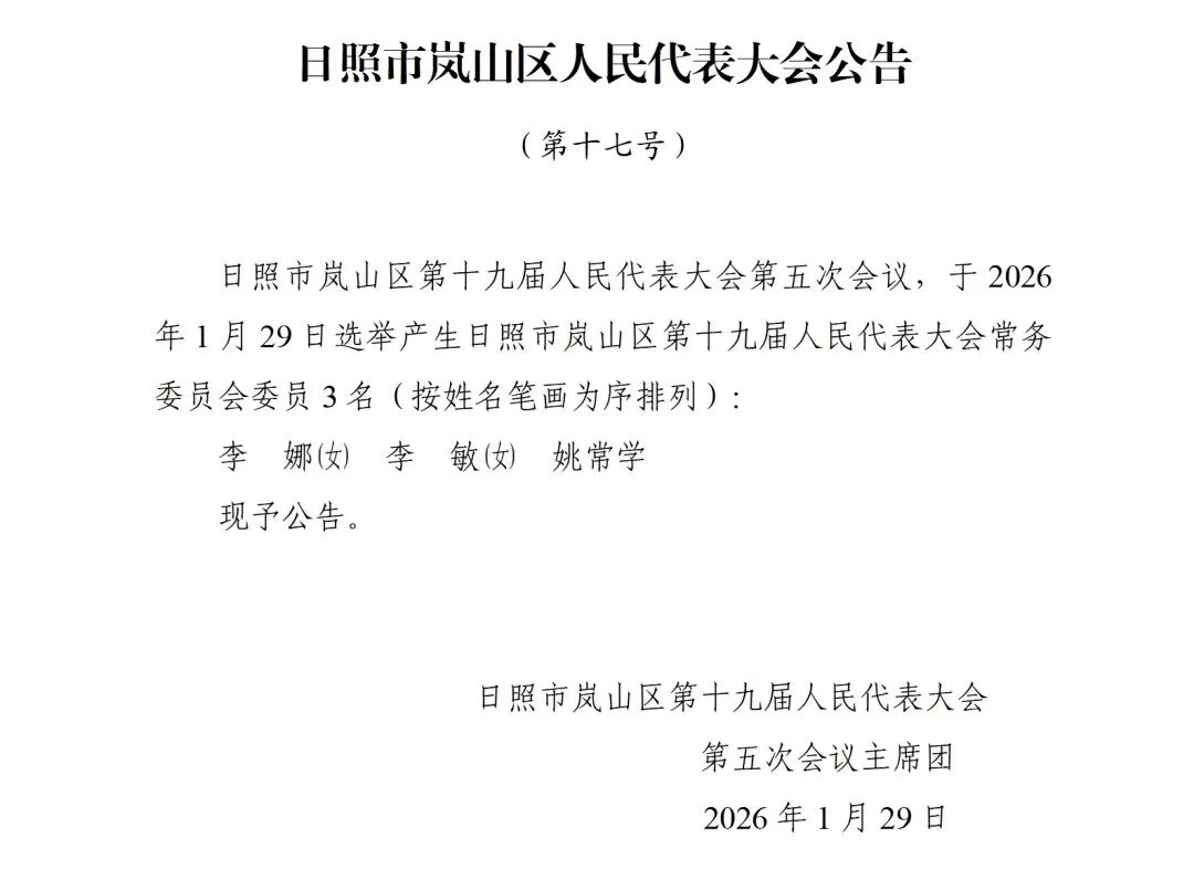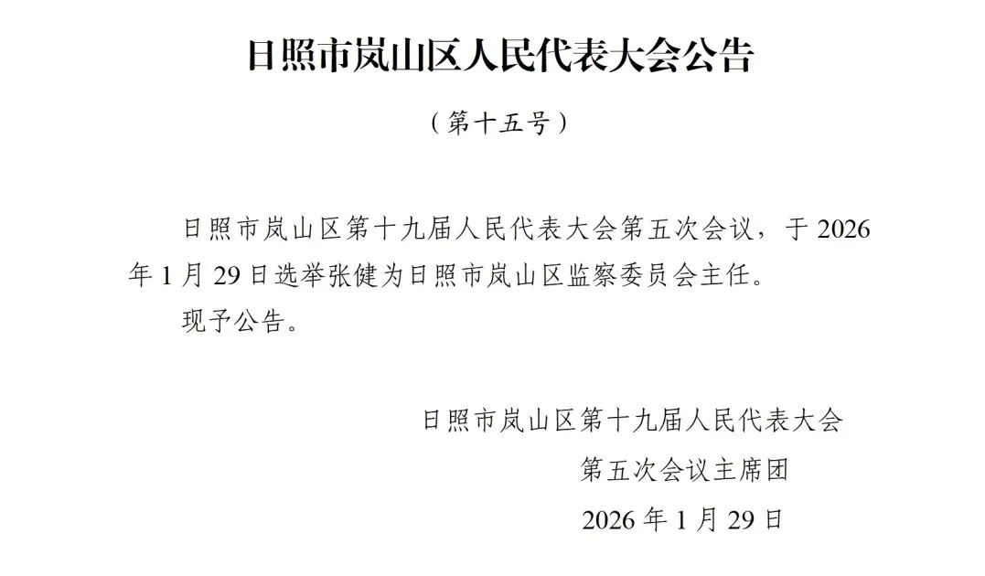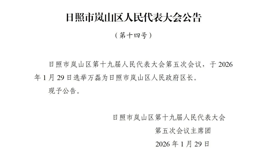 烟台市芝罘区第十九届人大常委会第三十六次会议,根据区人民政府区长宋军委的提请,于2026年1月29日决定任命: