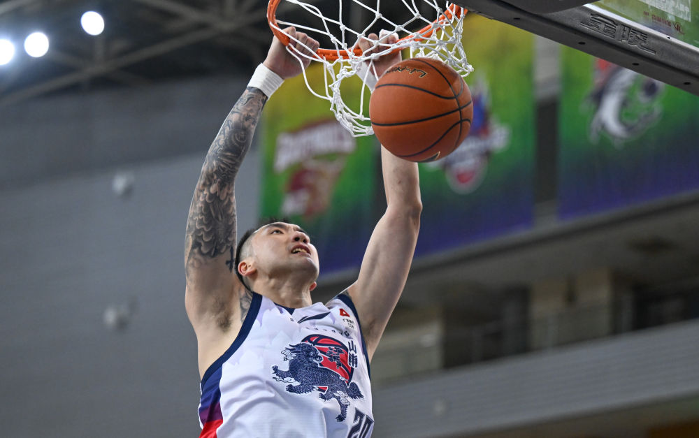 2月6日,山东队球员陶汉林在比赛中扣篮