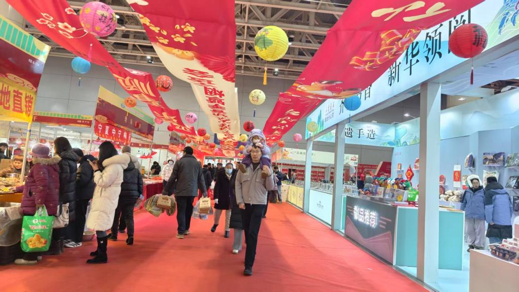 会场内,喜庆的装饰透着浓浓的年味,琳琅满目的各地特色商品吸引市民驻足,传统年货区人气最旺。手工制作的味道丰富的特色糕点、坚果炒货摊位前围满了试吃选购的市民。