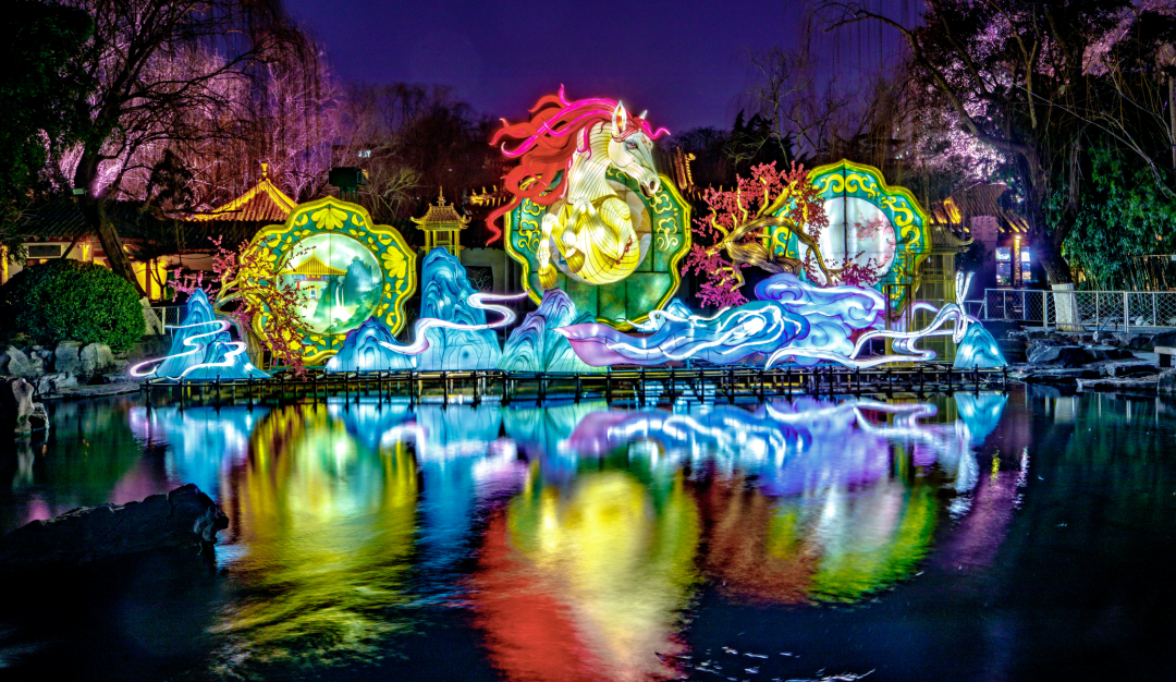 灯耀千泉承古韵,马腾盛世启新章。济南市第45届天下第一泉迎春花灯会以“三景融河·光映泉城”为主题,以护城河为灵动纽带,串联趵突泉、五龙潭、大明湖三大核心景区,深度挖掘济南泉水文化、名士文化、非遗文化精髓,构建“灯与泉共生、古与今交融”的生动格局,让千年泉城在灯火流转间绽放蓬勃生机,让传统年俗在华彩蝶变中焕发无限活力。