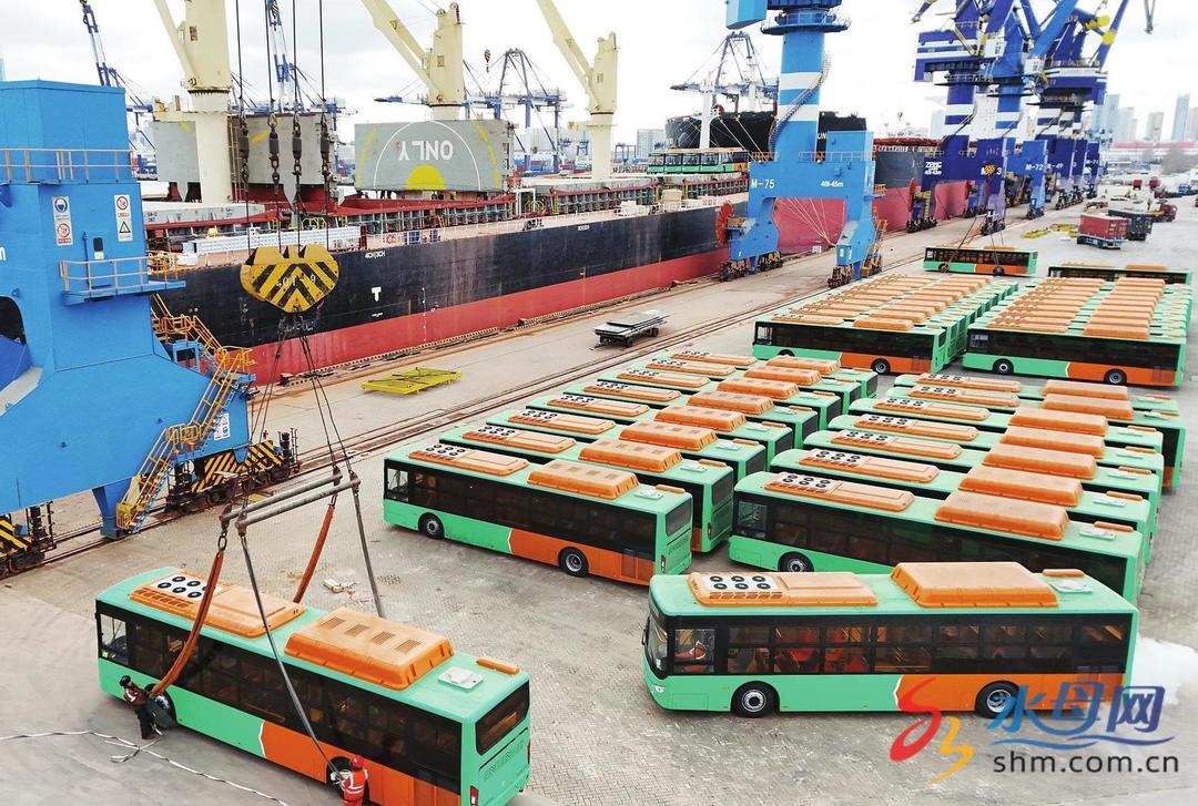 出口墨西哥 百台天然气公交车在烟台港装船启程