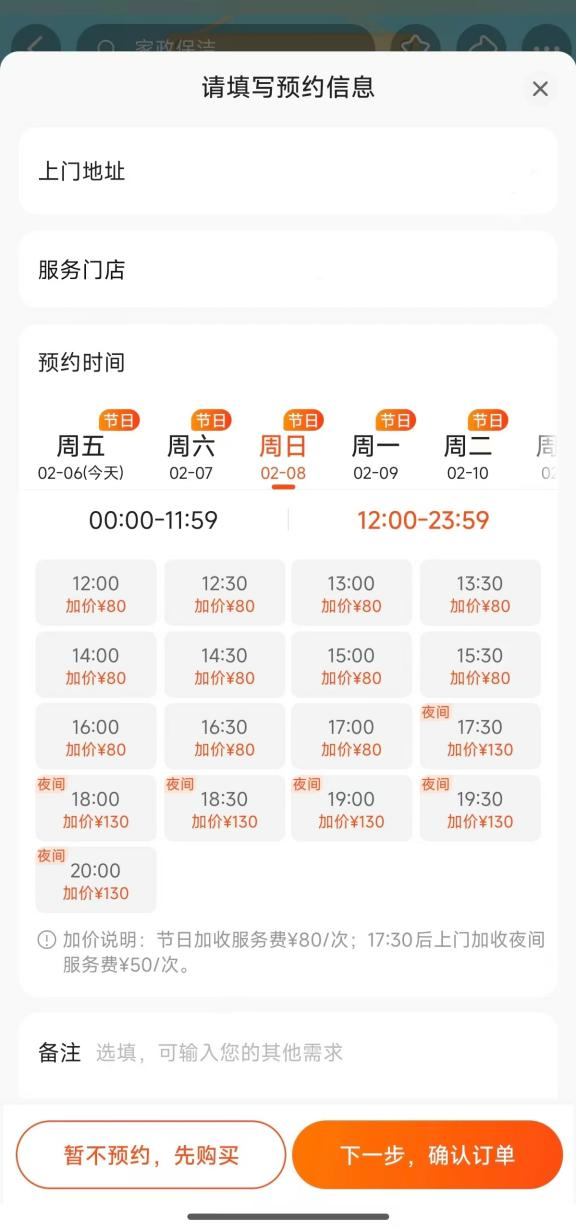某家政公司下单页面