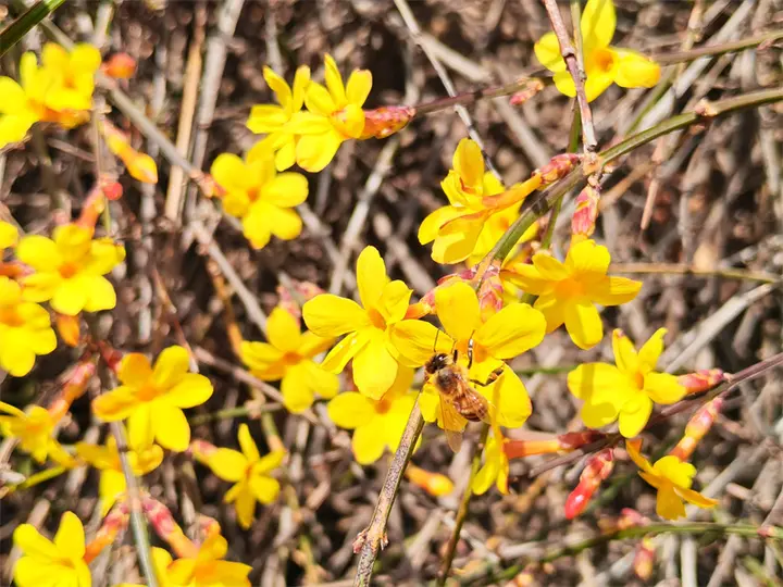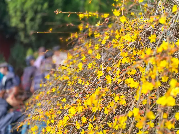 泰安日报社·中华泰山网讯(记者 刘小东 通讯员 路秋生 李思敏 审核 亓卉 终审 朱新宇)丙午马年新春佳节,泰安天气晴好。在泰山中路登山起始点一天门附近,一丛丛金黄的迎春花悄然攀上枝头,在料峭寒风中绚烂盛开,成为春节假期一道亮丽的风景线,引得过往游客纷纷驻足留影。