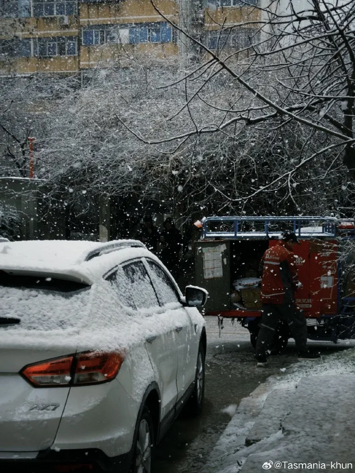 今天白天,西安出现明显降雪,路面湿滑。(图片来源见水印)