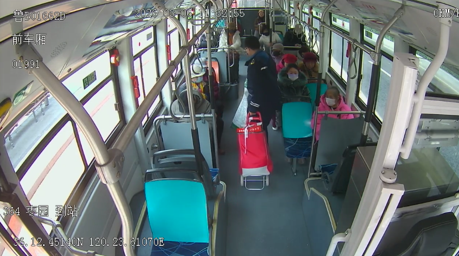 工作人员根据老人提供的信息,调取监控,还原了这暖心的一幕,3月6日中午,贺长盛驾驶364路公交车自南丰路萍乡路车站出发,11时33分,车辆行驶至枣园车站,贺长盛注意到一位老年乘客正吃力地拉着小车前来乘车。他立即按照规定将车停好,快步下车,双手稳稳托住小推车的底部。考虑到老人行动不便,他细心地为老人安排好座位,搀扶她坐下,并暖心叮嘱:“奶奶,您扶好啊,注意安全,下车的时候叫我。”在确保老人坐稳后,贺长盛才回到驾驶位,系好安全带继续平稳启动车辆。这暖心的一幕,让老人和当时车上的其他乘客都倍感温馨。