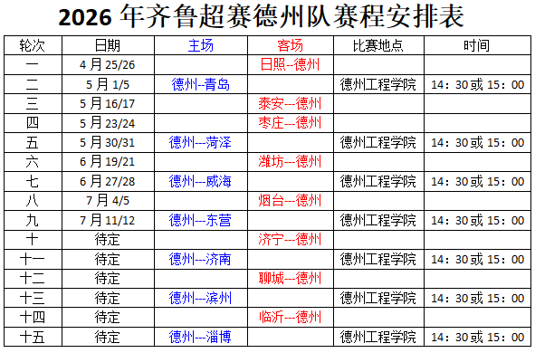 2026年齐鲁超赛赛程公布!德州队首战客场挑战日照队